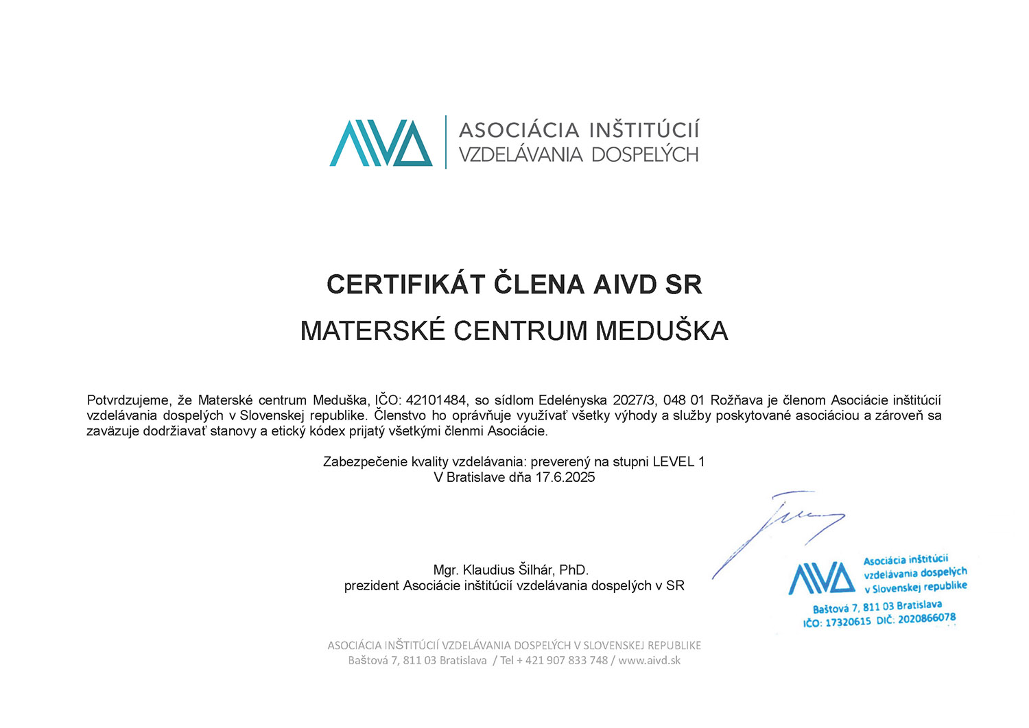 Materské centrum Meduška je členom Asociácie inštitúcií vzdelávania dospelých, združujúcej inštitúcie, ktoré sa zaoberajú vzdelávaniu dospelých. AIVD sieťuje odborníkov a podporuje vzdelávanie dospelých na Slovensku i v zahraničí.